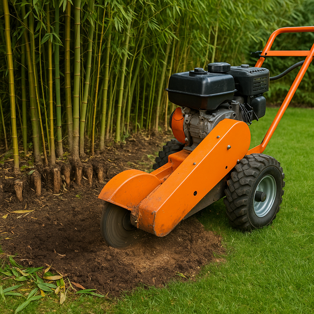 - Le matériel adapté : dessoucheuse professionnelle pour extraire racines et rhizomes sans recourir à une mini-pelle (aucune dégradation du terrain).