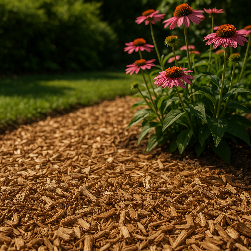 Bois naturel – classique et économique, enrichit le sol au fil du temps.