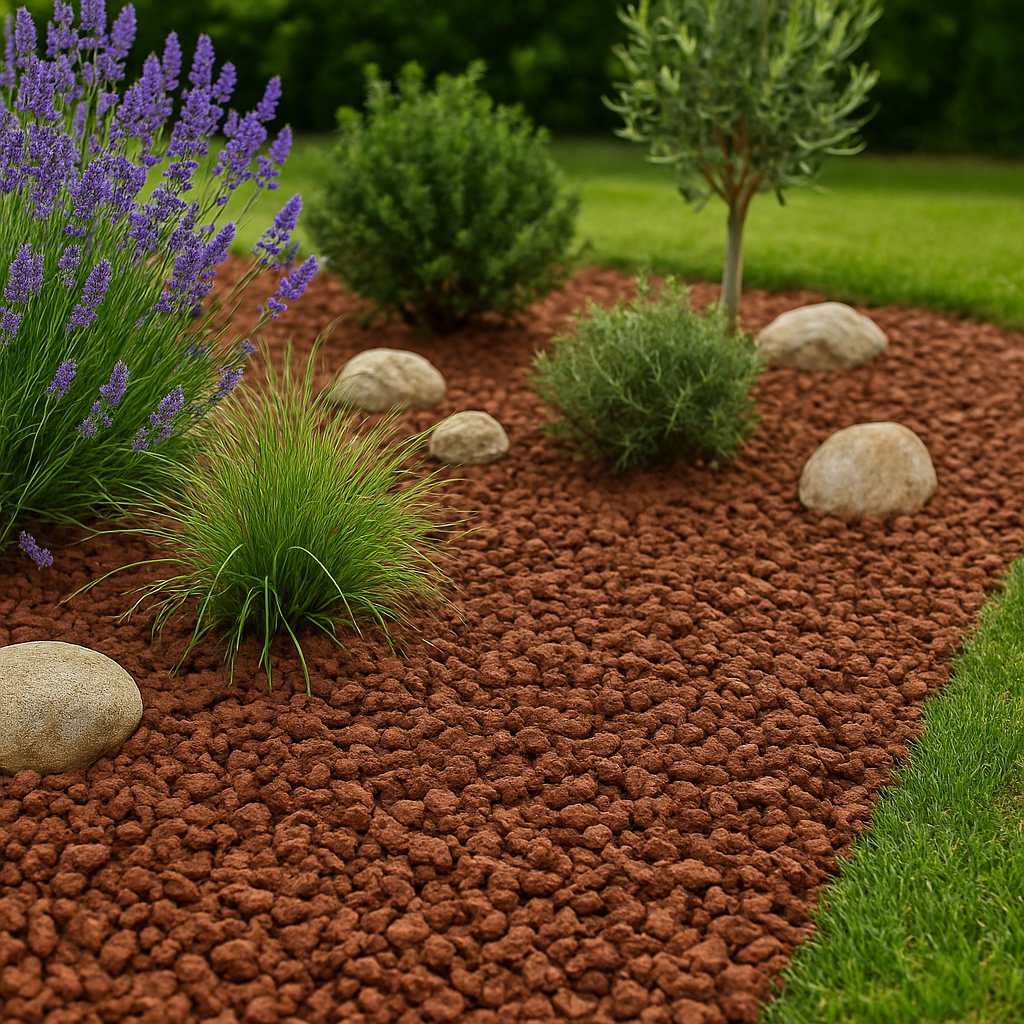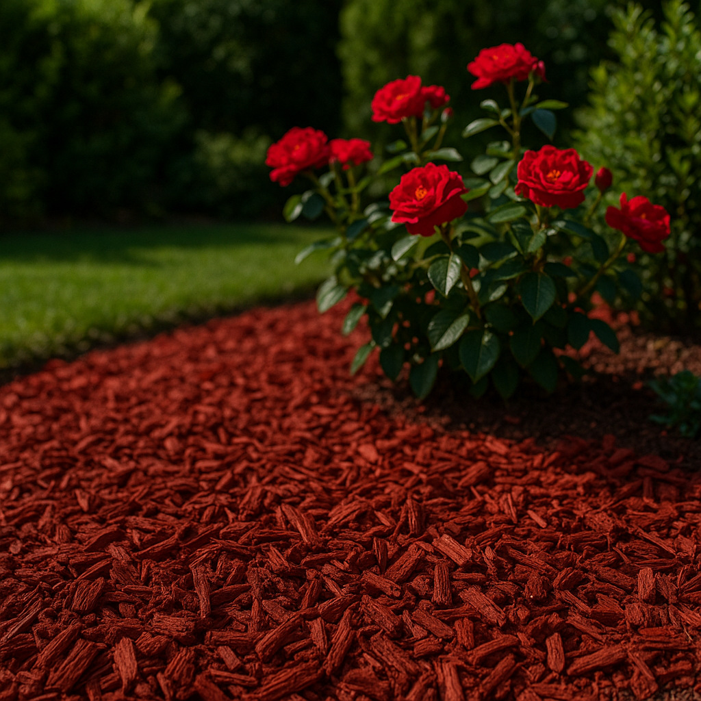 Le paillage bois rouge apporte une touche décorative et moderne à vos massifs.