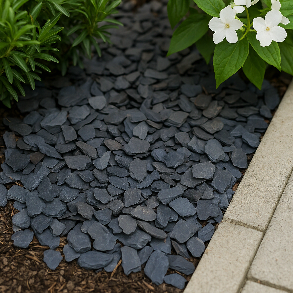 Le paillage ardoise concassée est un paillis minéral élégant et durable.