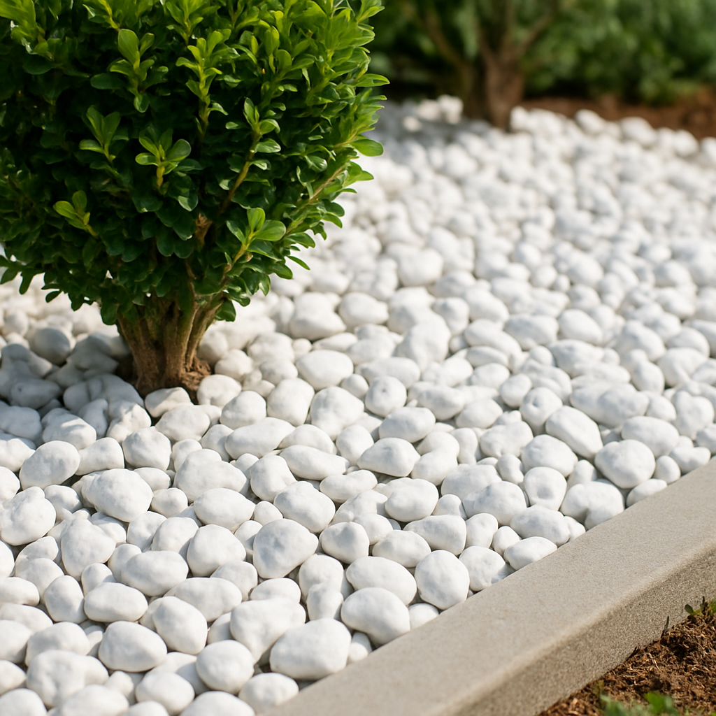 Galets blancs carrare – haut de gamme et lumineux, idéal pour un jardin design.